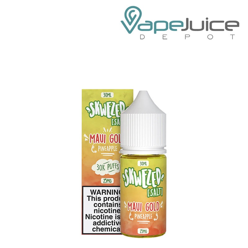 Skwezed Maui Gold Salt eLiquid Maui Gold Skwezed salt eLiquid is a pure pineapple bliss poured in a 30ml chubby gorilla bottle. Crafted with care by Skwezed, this exclusivenicotine salt vape serves the naturally sweet flavor of Maui grown pineapples. You w