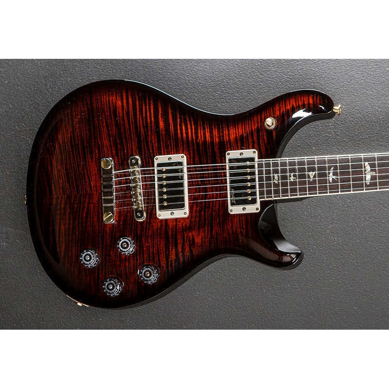 Fire Red Wraparound Burst, High gloss nitro finish, Violin carved figured Maple top, Mahogany body, Pattern Vintage carved Mahogany neck, 10 radius Rosewood fingerboard with the Bird inlays and faux bone binding, 24.594 scale length, 1 11/16th nut width, PRS McCarty III bridge and neck pickups, 3-way toggle switching with the volume and push/pull coil tap tone controls for each pickup, PRS two-piece bridge, PRS Phase III non-locking tuners with the wing buttons, 8.0 pounds, With hardshell case