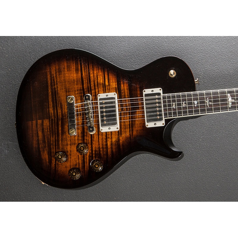 Black Gold Wraparound Burst, High gloss nitro finish,Violin carved Flame Maple 10 top, Mahogany body, Pattern Vintage carved Mahogany neck, 10 radius Rosewood fingerboard with the Bird inlays and faux bone binding, 24.594 scale length, 1 11/16th nut width,
