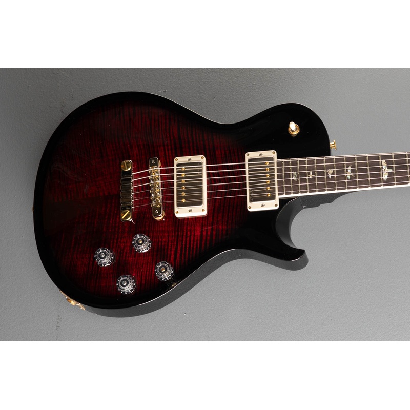 Fire Red Wraparound Smokeburst, High gloss nitro finish,Violin carved Flame Maple 10 top, Mahogany body, Pattern Vintage carved Mahogany neck, 10 radius Rosewood fingerboard with the Bird inlays and faux bone binding, 24.594 scale length, 1 11/16th nut width, PRS 58/15LT bridge and neck pickups, 3-way toggle switching with the volume and push/pull coil tap tone controls for each pickup, PRS two-piece bridge, PRS vintage style non-locking tuners with the wing buttons, 8.3 pounds, With hardshell case
