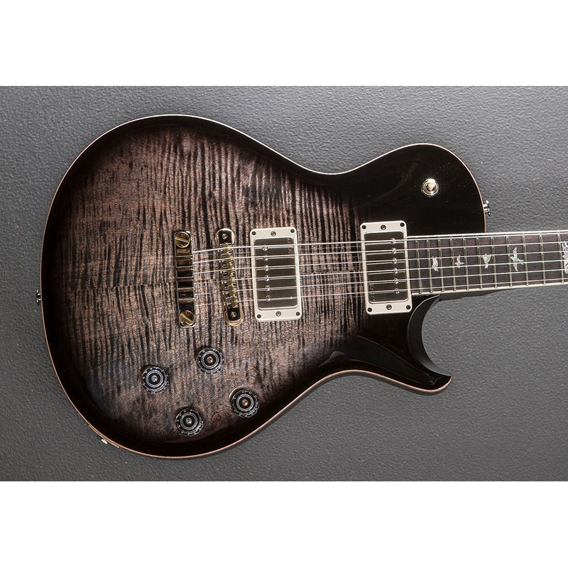 Charcoal Burst,High gloss nitro finish,Violin carved figured Maple top, Mahogany body, Pattern Vintage carved Mahogany neck, 10 radius Rosewood fingerboard with the Bird inlays and faux bone binding, 24.594 scale length, 1 11/16th nut width, PRS 58/15LT+ b