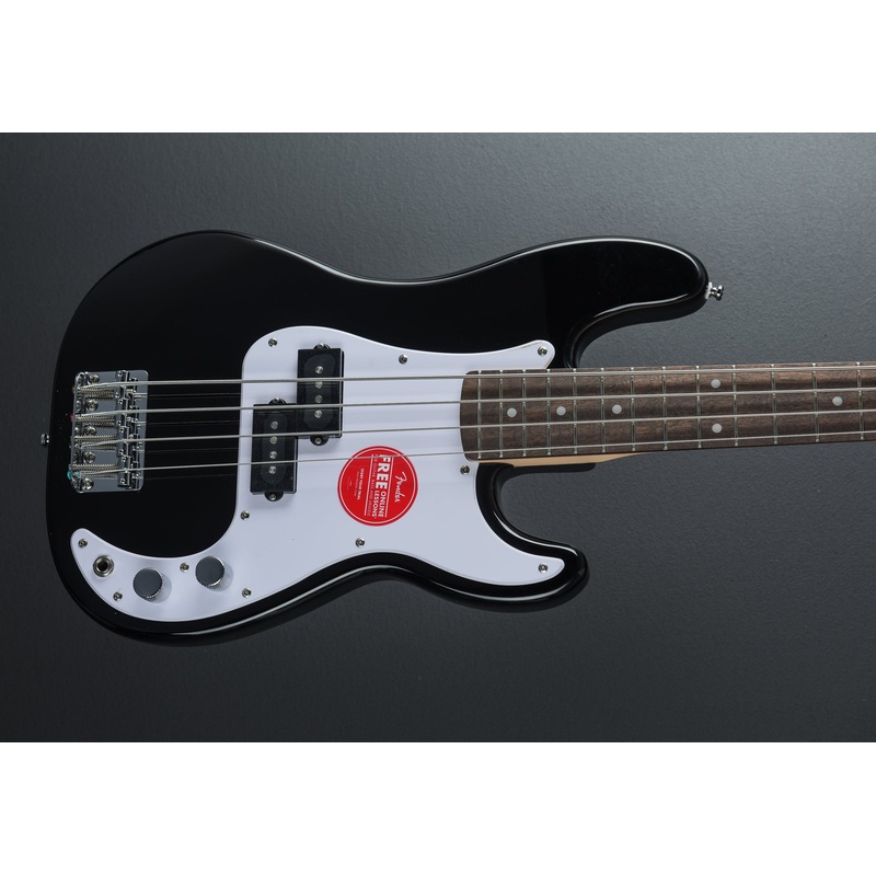 Black, Crafted in Indonesia, Poplar body, Gloss polyurethane body finish, C shaped Maple neck with a 9.5 radius Indian Laurel fingerboard and narrow tall frets, 28.6 scale length, 1.5 nut width, Split single coil Precision Bass pickup with the master volume and tone controls, Vintage style bridge with the barrel saddles, Cast/sealed tuners, 5.8 pounds, Case not included