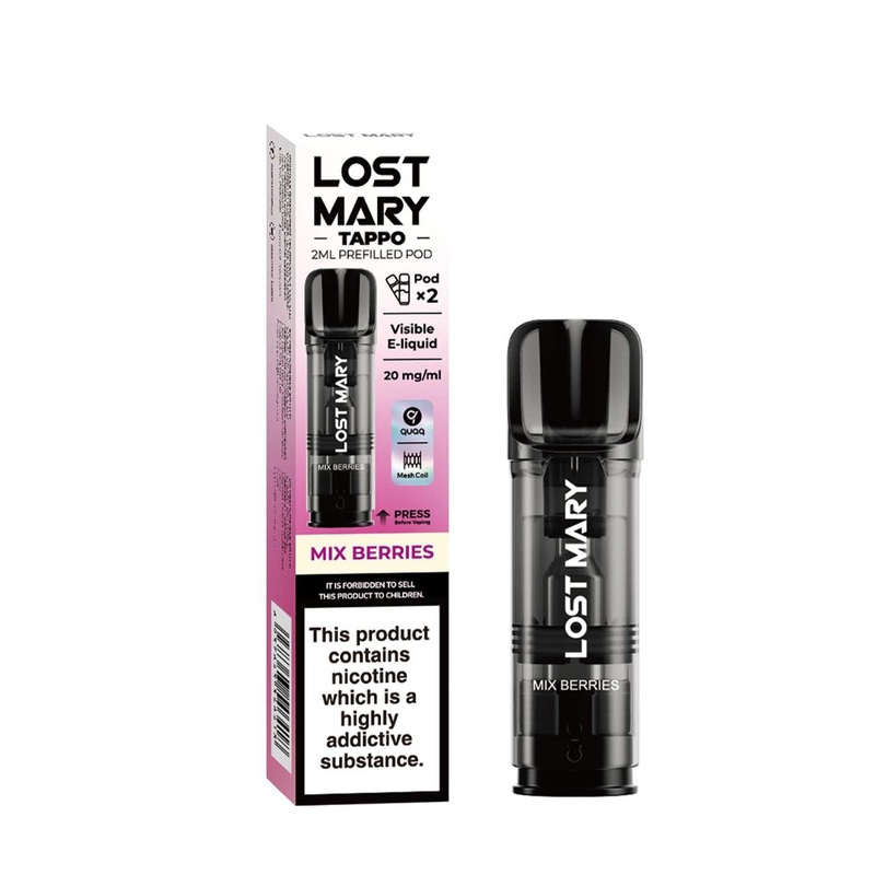 Experience a medley of forest flavours with Mix Berries Lost Mary Tappo Pods. Made for use with the Lost Mary Tappo pod vape kit, each pod contains 2ml of vape juice and can deliver up to 600 puffs.