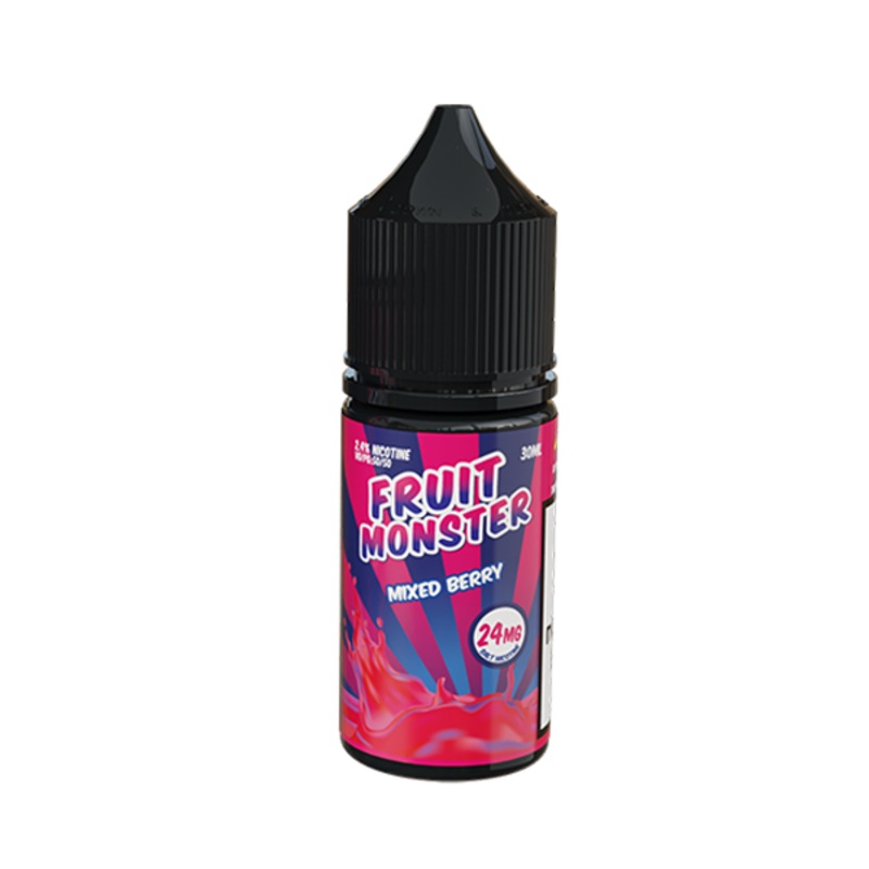 FRUIT MONSTER SALTS Flavor: Mixed Berry Fruit Monster Salts features tasty mixed berry notes in a smooth nic salt formula from Orlando based Monster Labs. A perfect disposable vape alternative. E-Liquid Size: 30ml Nicotine Levels: 24mg, 48mg VG/PG Ratio: 5
