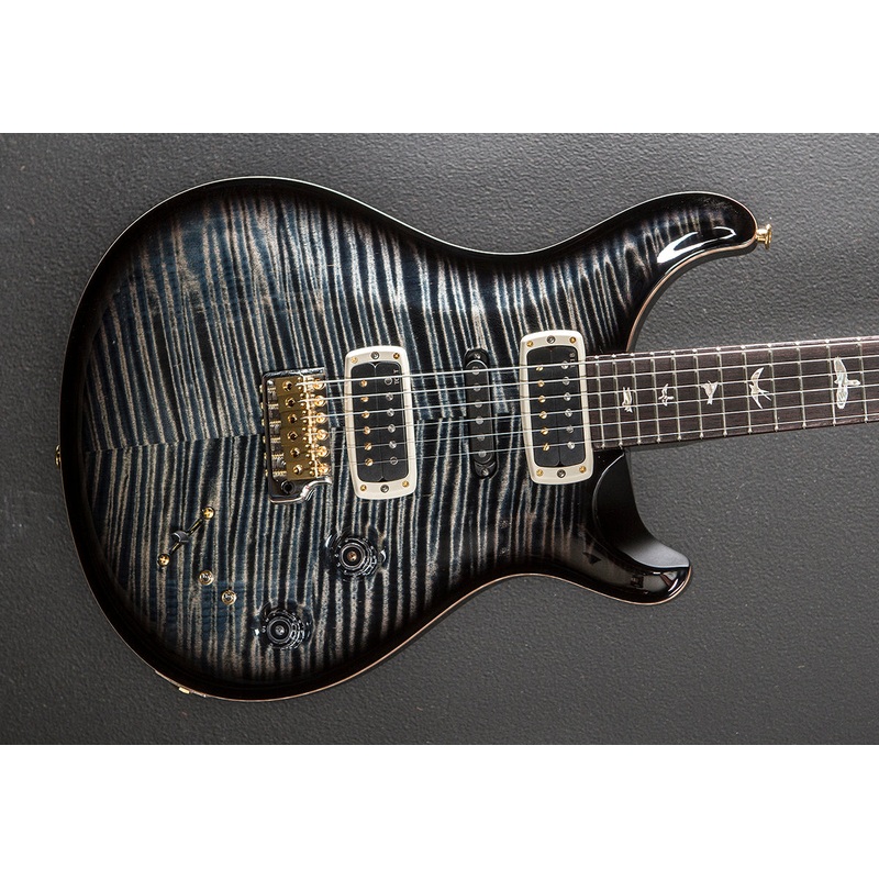 Faded Whale Blue Smokeburst, High gloss nitro finish, Violin carved Flame Maple 10 top, Mahogany body, Pattern carved Mahogany neck, 10″ radius Rosewood fingerboard with the Bird inlays, 25 scale length, 1 11/16th” nut, PRSTCI bridge and neck pickups plus theNS-01 middle pickup,5-way blade switching with the volume and push/pull tone controls plus the two mini-toggle EQ switches, PRS Gen III tremolo, PRS Phase III locking tuners with the wing buttons, 8.0 pounds, With hardshell case