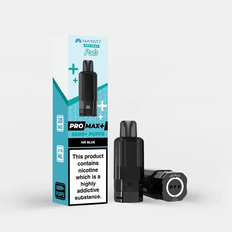 Hayati Pro Max+ Pods Find Your Flavour Fix! Got a Hayati Pro Max+ device? Perfect. Explore 30 bold flavours and enjoy smooth, flavour-packed clouds with every puff. Mr Blue A mixed berry medley of strawberries, blueberries, and mulberries finished with a c