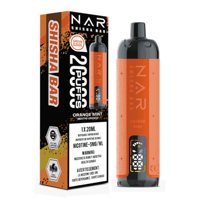 Orange Mint NAR Shisha Bar 20K Disposable Vape by NAR The Orange Mint NAR Shisha Bar 20K Disposable Vape combines the vibrant citrus flavour of orange with a refreshing minty finish, delivering a unique shisha-inspired vape experience. This flavour is perf