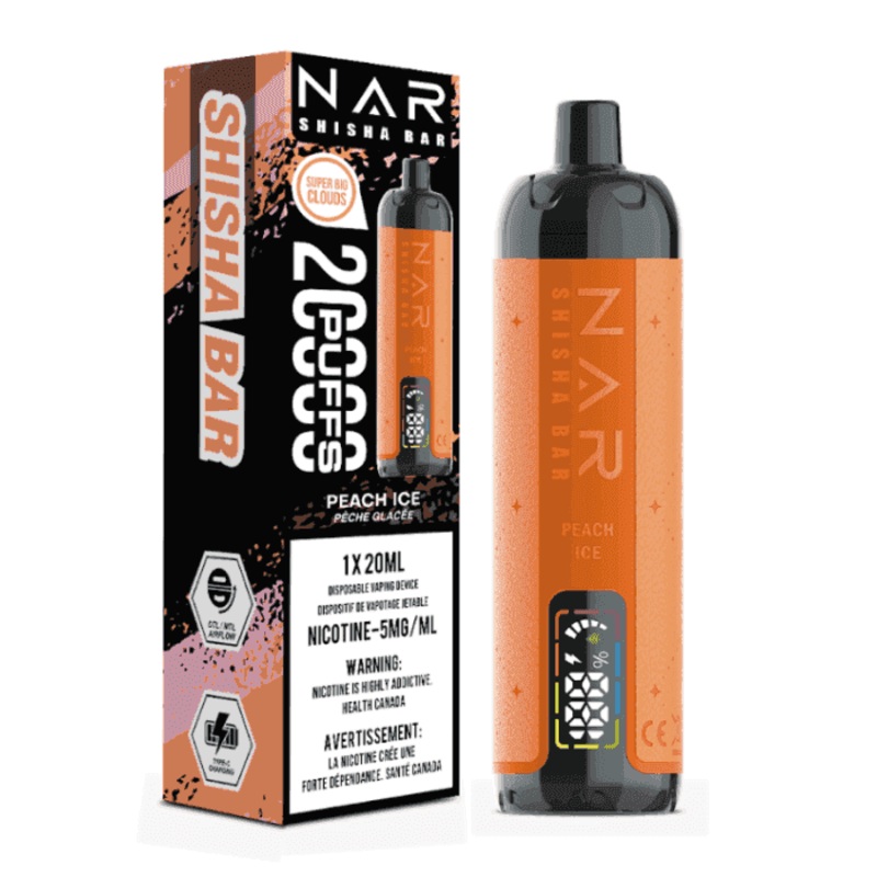 - 1x Peach Ice NAR Shisha Bar 20K Disposable Vape by NAR