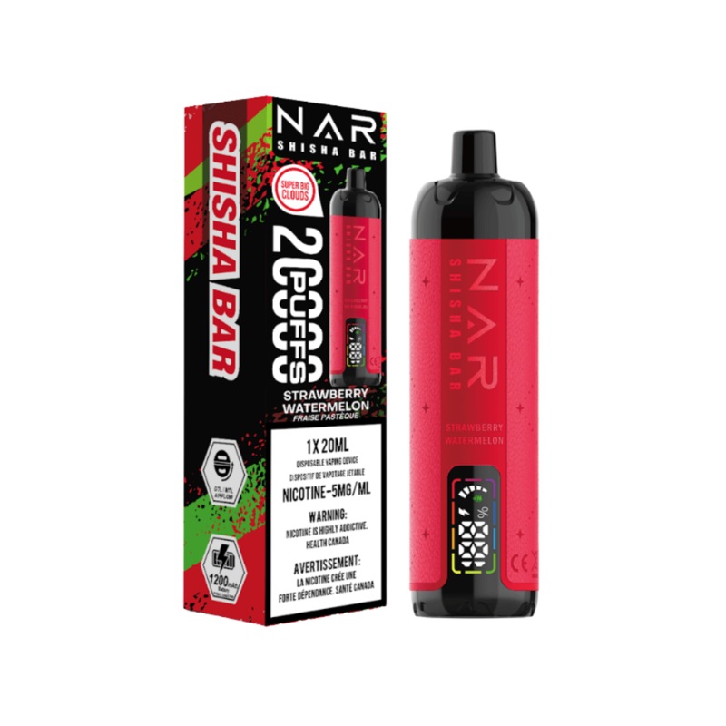 Strawberry Watermelon NAR Shisha Bar 20K Disposable Vape by NAR Strawberry Watermelon NAR Shisha Bar 20K Disposable Vape by NAR delivers a smooth and juicy blend of ripe strawberries and crisp watermelon, layered with shisha-style richness. Each puff combi