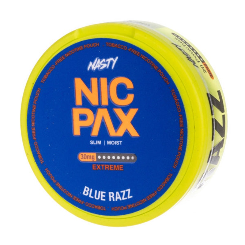 Nasty Nic Pax Blue Razzprovides a juicy burst of lipsmacking blue raspberry flavour. These nicotine pouches are available in a30mg strength and will suit experienced users with strong cravings.