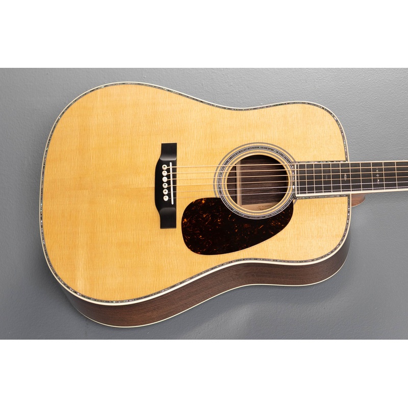 From Martin: "The Martin D-42 is a trusted blend of power and pearl, designed for players who seek bold tone and stunning visual details. Its Dreadnought body size delivers a loud, projective sound with strong bass, clear trebles, and rich overtones, makin