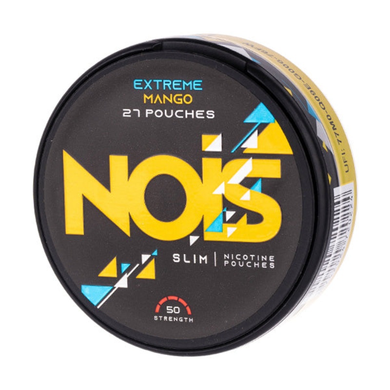 Nois Extreme Mango Nicotine Pouches will assail your senses with rich and heady tropical flavour melded with sprigs of fresh mint. These extra strong pouches are recommended for experienced users. Each pack contains 27 pouches at 50mg/g or 25mg per pouch n