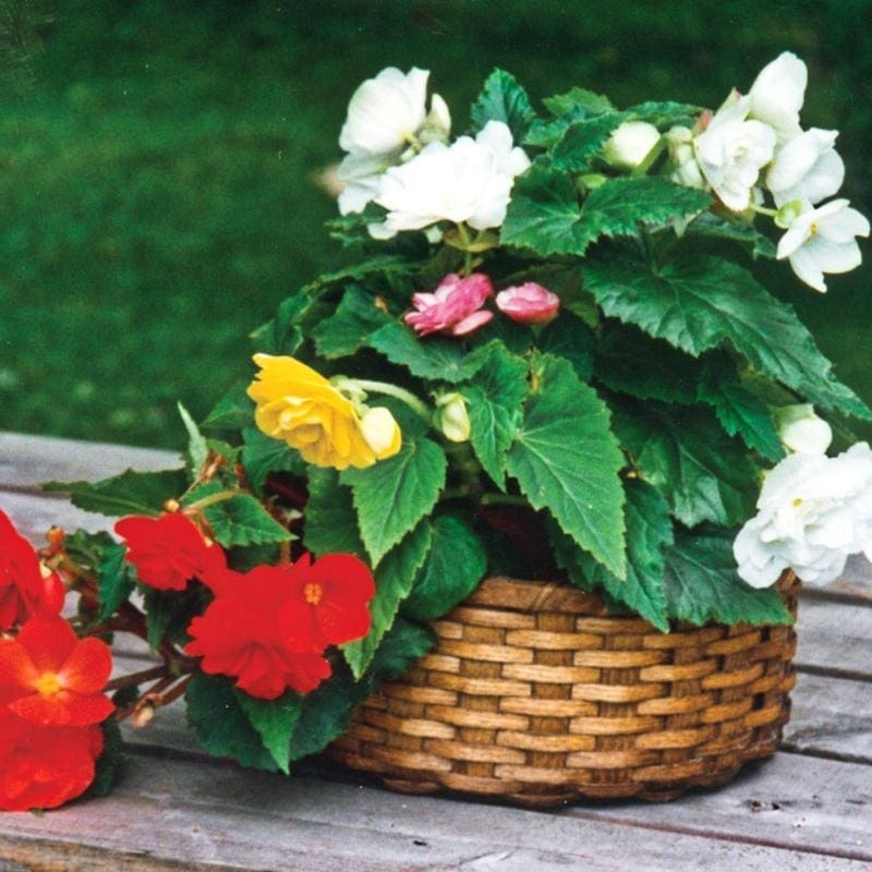 The exceptionally large flowers and continuous bloom make the non-stop series a vibrant choice for dramatic containers and plantings. The 10″ tall wing-shaped deep green foliage, some edged in red, carries an abundance of remarkable, 3 1/2 to 4 1/2 inch double blooms. Apple blossom, golden orange, and rose petticoat are but a few of the dozen distinct colors.