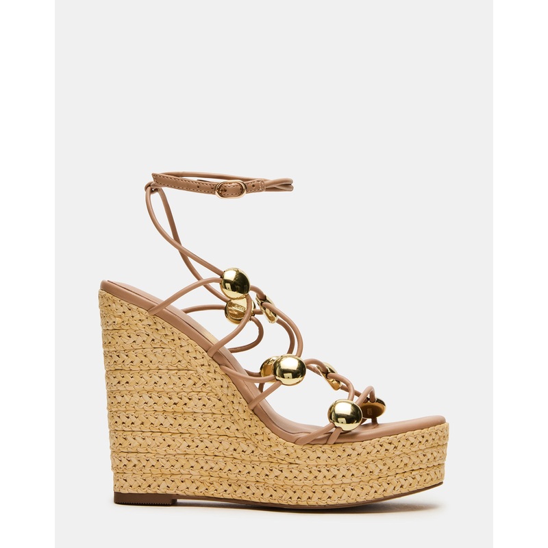 The OAKLIE NATURAL platform strappy wedge sandal combines elevated style with comfortable support. Featuring a sturdy wedge heel and adjustable straps, this sandal offers both stability and a customized fit. The platform sole adds height without compromisi