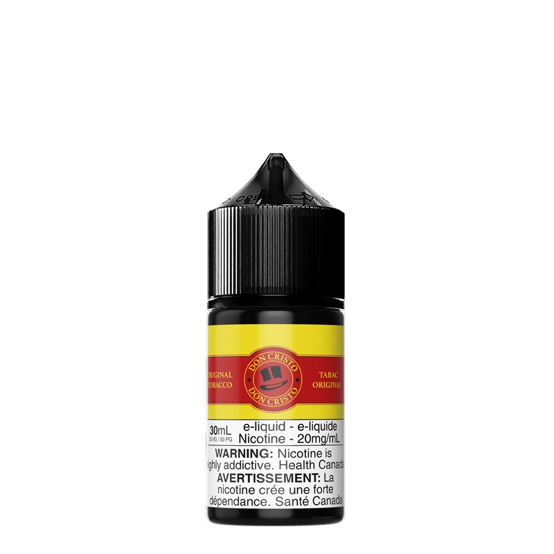 ORIGINAL SALTS 30ML BY DON CRISTO These blends arenicotine salt infused e-Liquids formulated for pod systems and other similar low power devices.Not recommend for use with RDA's or sub-ohm tanks and devices. Its a beautiful cigar flavor that's steeped for