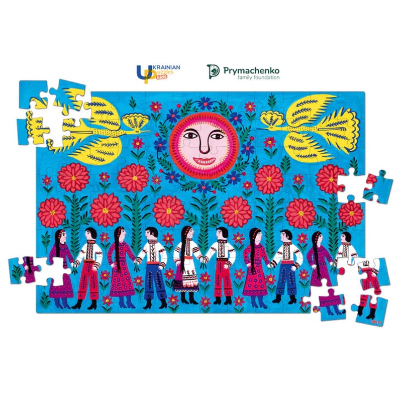 Ukrainian Puzzles, in collaboration with the Prymachenko Family Foundation, has created a series of different puzzles featuring the works of Maria Prymachenko. This puzzle depicts the painting Our Army, Our Protectors, created by the artist in 1978.