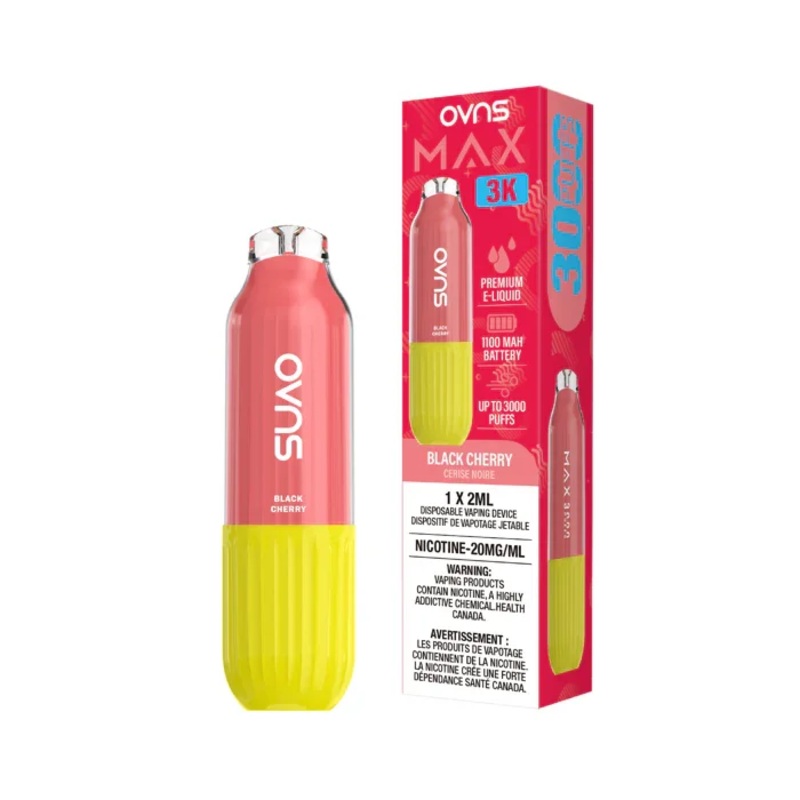 The Black Cherry OVNS Max 3K Disposable Vape by OVNS delivers a bold and juicy cherry flavour with a rich, dark sweetness. Each puff offers a smooth balance of fruity depth and natural tartness, making it a standout choice for vapers who enjoy a full-bodied cherry profile.