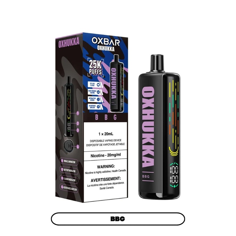 Introducing the Oxbar Oxhukka, a rechargeable disposable vape that offers an incredible 25,000 puffs of rich and satisfying flavor. Experience the unique BBG flavor, which seamlessly blends the smooth, robust notes of premium tobacco with the delightful sw