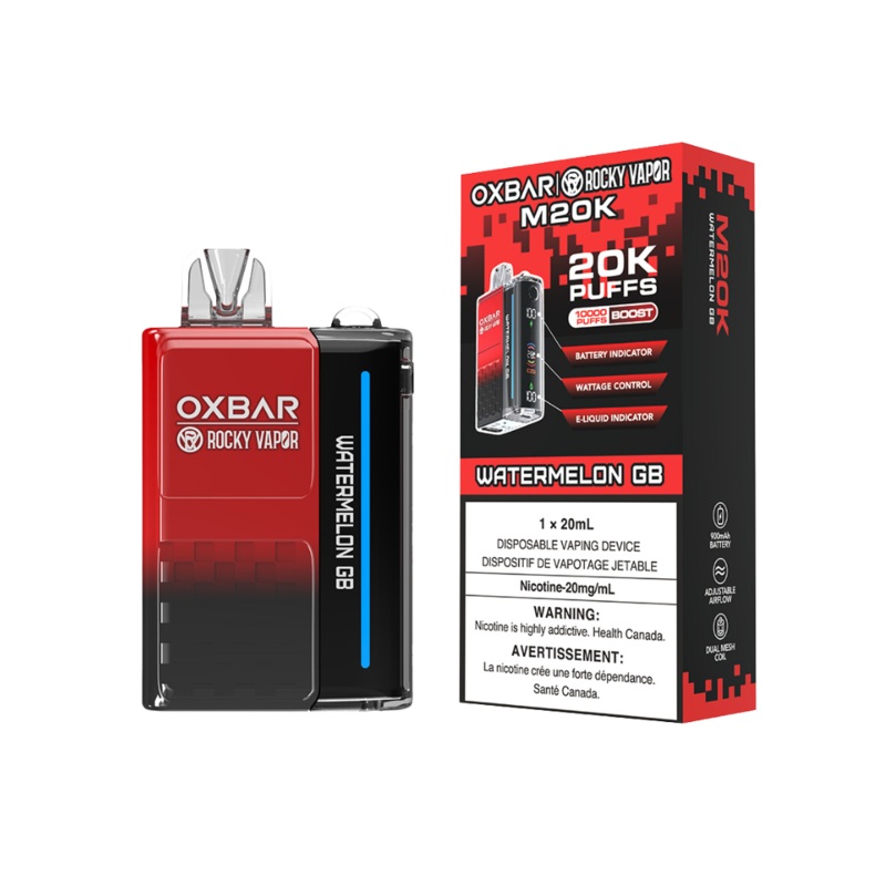 UMA-2774-AFRWOxbar Rocky Vapor M20K 20K Puffs Pastque GB Vapeur jetable rechargeable puissance rglable 20 mg
