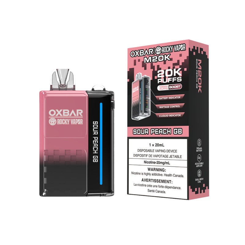 UMA-7223-XWYMOxbar Rocky Vapor M20K 20K Puffs Sour Peach GB Vape jetable rechargeable puissance rglable 20 mg