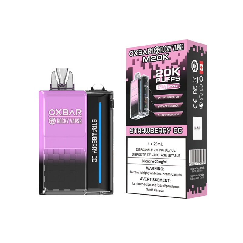 UMA-5726-OAPCOxbar Rocky Vapor M20K 20K Puffs Strawberry CC Vape jetable rechargeable puissance rglable 20 mg