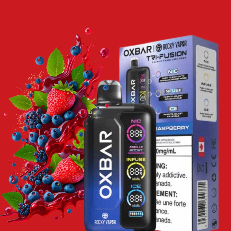 Get a clean hit of sweet and tangy berries with Oxbar Tri-Fusion 45K Disposable Vape Blueberry Raspberry. With 30ml salt nic and a large puff count disposable vape design, this is your next favorite big juice capacity disposable vape.