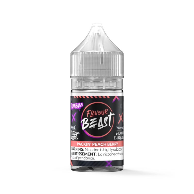 FLAVOR PROFILE Packin' Peach Berry Flavour Beast Freebase E-Liquid Collection. Size: 30ml 70VG / 30PG Nicotine Type: Freebase Nicotine: 0mg, 3mg, 6mg, 12mg