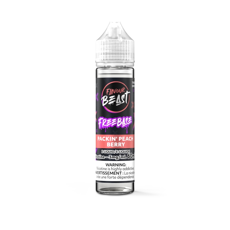 FLAVOR PROFILE Packin' Peach Berry Flavour Beast Freebase E-Liquid Flavour Beast Freebase E-Liquid Collection. Size: 60ml 70VG / 30PG Nicotine Type: Freebase Nicotine: 0mg, 3mg, 6mg, 12mg