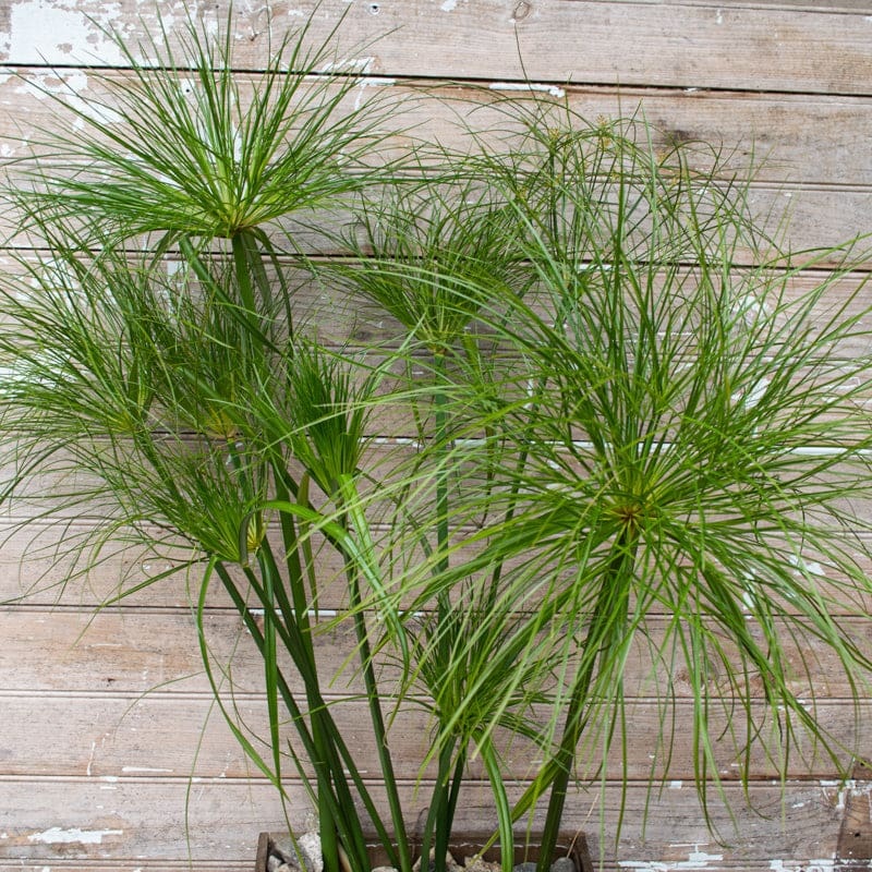 Commonly known as an umbrella plant, papyrus is a bold foliage specimen offering a tropical feel to the garden scape, making an excellent exotic vertical accent plant in containers or ground. Thick leafless stems are clump-forming, growing up to 6 feet wit