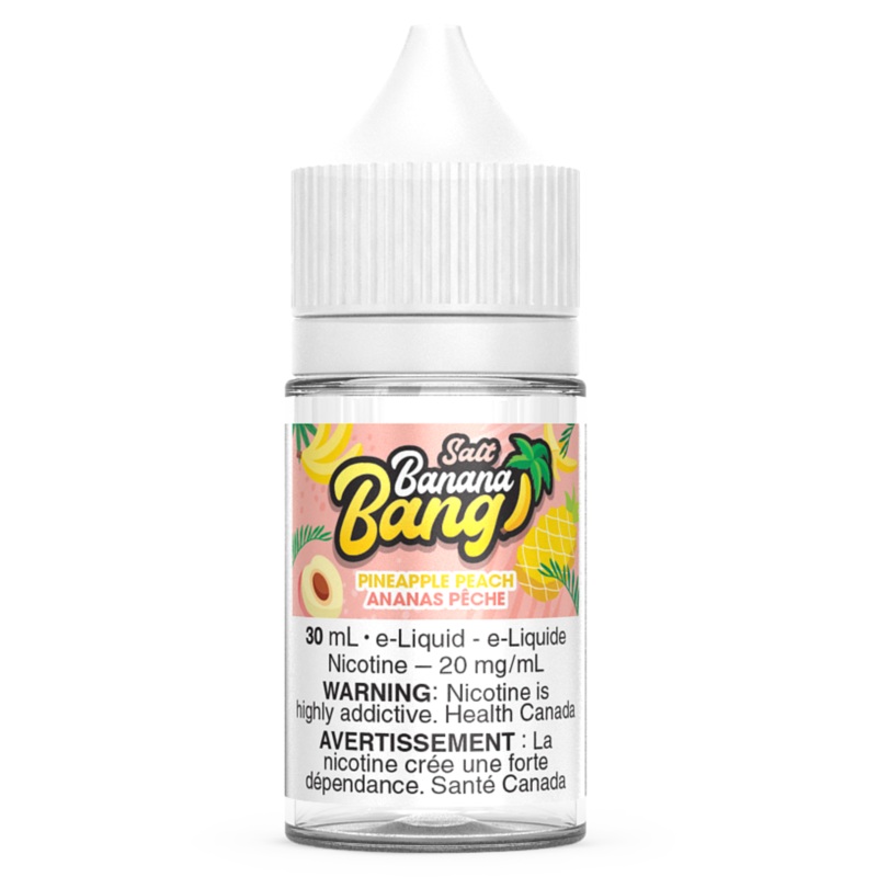 A tangy tropical peach blended with sweet banana. Banana BangSalt is NOT intended for use in Sub-Ohm Tank systems.Banana BangSalt E-Liquid is intended for small pod systems. 50% VG 50% PG *All products containing e-liquid have Ontario Provincial and Federa
