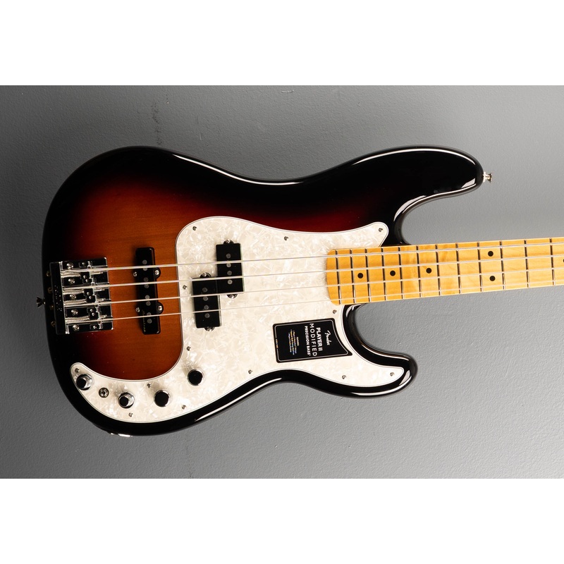 The Player II Modified Active Precision Bass is a classic bass with the modern player in mind. Everything about the neck is designed for fast and fluid playability, from the Modern C-profile with silky satin urethane finish on the back to the comfy 9.5-radius slab rosewood or 1-piece maple fingerboard with smooth rolled edges and 20 medium jumbo frets. The alder body provides classic Fender punch and is available in a variety of exciting new finishes. The Player II Modified Precision Bass Neck and Noiseless Jazz Bass Bridge Pickups deliver classic Fender thump and growl while eliminating unwanted noise and the all-new active preamp with passive tone control and improved EQ section gives players the perfect tool to dial in their favorite tones. The 4-saddle HiMass bridge, tapered-shaft tuners and TUSQ nut all combine to keep tuning incredibly stable for even the most demanding performances.