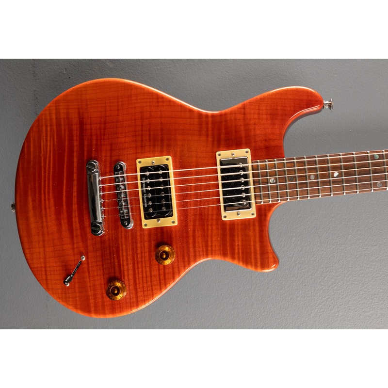 Very good condition, Trans Orange, Flame Maple top on a Mahogany body, 12″ radius Rosewood fingerboard with dot inlays on a Mahogany neck, 25.125″ scale length, 1 11/16″ nut width, Seymour Duncan Whole Lotta Humbucker bridge and Seth Lover neck pickups have been installed, 3 way switching with volume and tone controls, Nashville style adjustable bridge and stop bar tailpiece, Grover tuners, 8.5 pounds. Comes with hardshell case