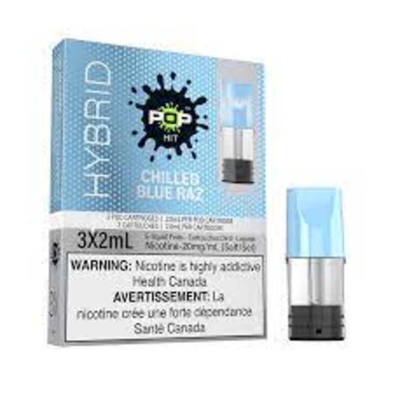 POP PODS -CHILLED BLUE RAZ The legendary Pop Vapor has now introduced their best selling flavours in Hybrid closed pod systems. These are hybrid pop pods of 20mg strength made with a mixture of freebase and nicotine salts e-liquids for that extra throat hi