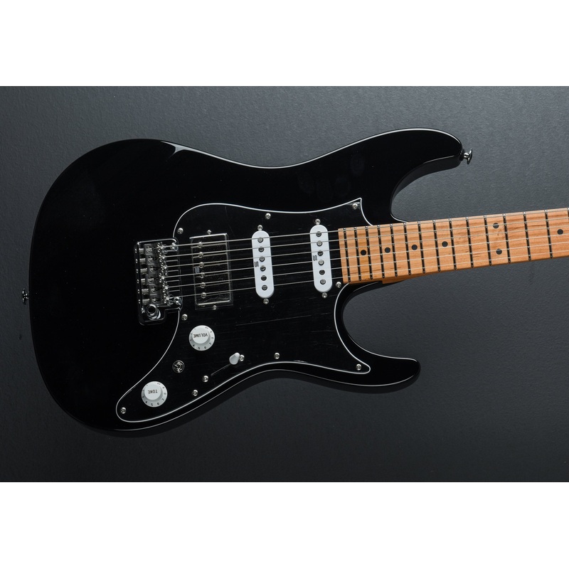 Black, Made in Japan, Alder body, AZ oval C shaped S-Tech Wood Roasted Maple neck, 9" to 12" compound radius Rosewood fingerboard with the Mother of Pearl dot inlays and stainless steel jumbo frets, 25.5" scale length, 1 5/8th" nut width, Seymour Duncan Fo