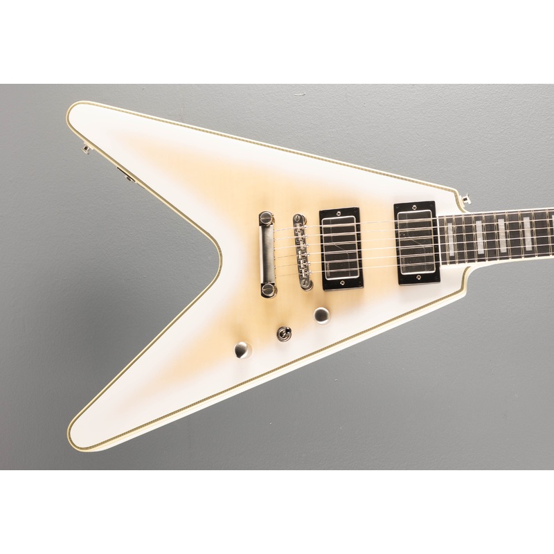 The Flying V Prophecy also includes Grover locking Rotomatic tuners, Epiphone’s LockTone Tune-O-Matic bridge and tailpiece for added sustain, a GraphTech NuBone nut that boosts harmonic content and increases tuning stability, custom binding, ebony fretboard, jumbo frets, PosiLok strap buttons, and an asymmetrical SlimTaper neck for comfort and speed. A premium gigbag is included.”