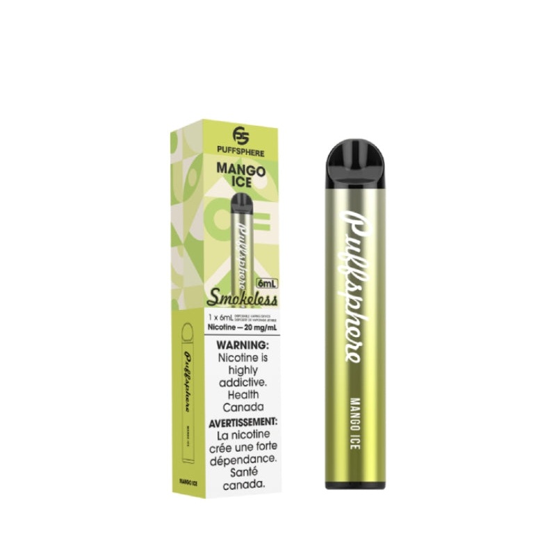 - 1 x PuffSphere Smokeless Mango Ice Disposable Vape