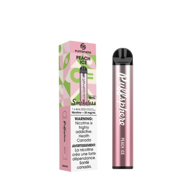 - 1 x PuffSphere Smokeless Peach Ice Disposable Vape