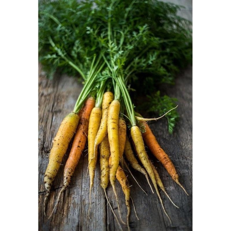 The Rainbow Carrot is one of the more unique vegetables that we sell. This carrot produces an amazing selection of possible colors; a white, 2 yellows, 2 oranges and a beautiful soft coral. Flavors for each shade are all slightly different. This is not a mixture; the same hybrid seed produces all.