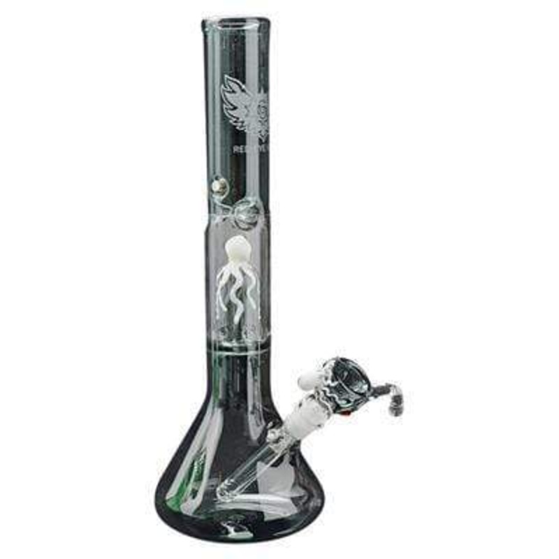 Red Eye Glass Octopus Perc Beaker Tube comes with a magnetic lighter holder and is a beautiful 17 inches tall. Glass-on-glass connections and yes, a double-layered ice pinch. Red Eye is reviving this old classic, long-favoured Octopus beaker. Complimented