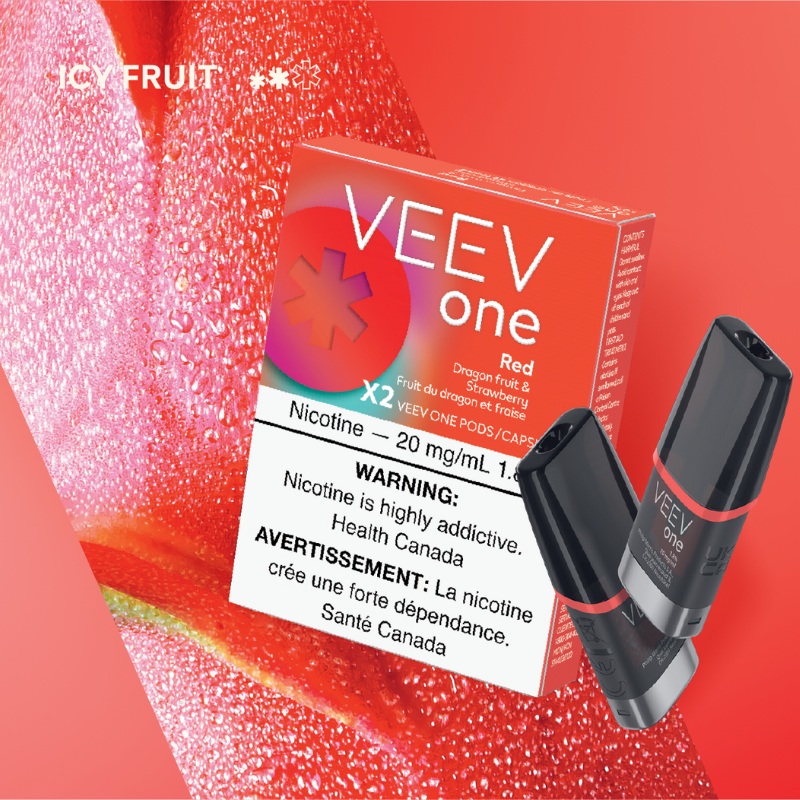 Red – Veev One Pods 2 Pack Offers a bold cherry flavor with notes of red berries, providing a vibrant and tangy taste. Ideal for vapers looking for a lively fruit flavor.
