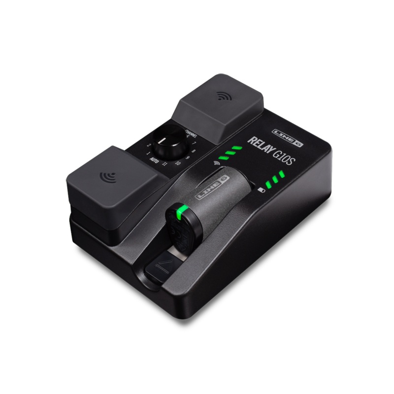 “The RelayG10S is a compact instrument wireless system that frees guitarists and bassists to move around the stage untethered. A member of the Relay Wireless family of products that are renowned for their reliability, the Relay G10S wireless system features a rugged metal stompbox receiver that easily integrates into a pedalboard, as well as simple plug-and-play operation. Thanks to its intelligent setup features, the unit immediately locates and locks onto the strongest available wireless frequency as soon as the transmitter is docked in the receiver.