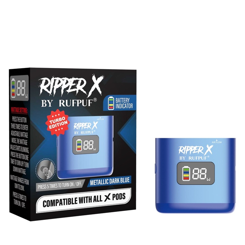 The RIPPER X Ultra Device by RUFPUF is expertly engineered for seamless integration and use with the full range of Ripper X Pods and LEVEL X Pods. This device is designed to deliver an unparalleled and customizable vaping experience, putting ultimate control in the hands of the user.