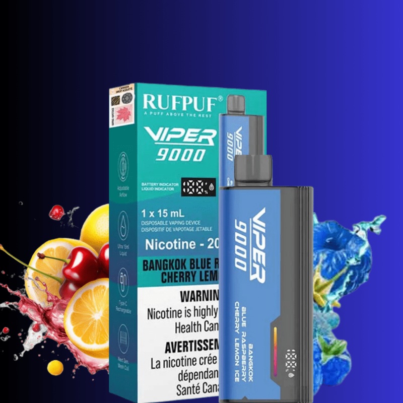 Rufpuf Viper 9000 disposable vape arrives with 15ml premium e-liquid for up to 9,000 puffs. Gcore’s Bangkok Blue Razz Cherry Lemon Ice flavour will give your taste buds a smacking good pucker. Combining tart blue raspberries with sweet dark cherries and a citrus twist of tangy lemon. Finish that off with a refreshing icy mint exhale.