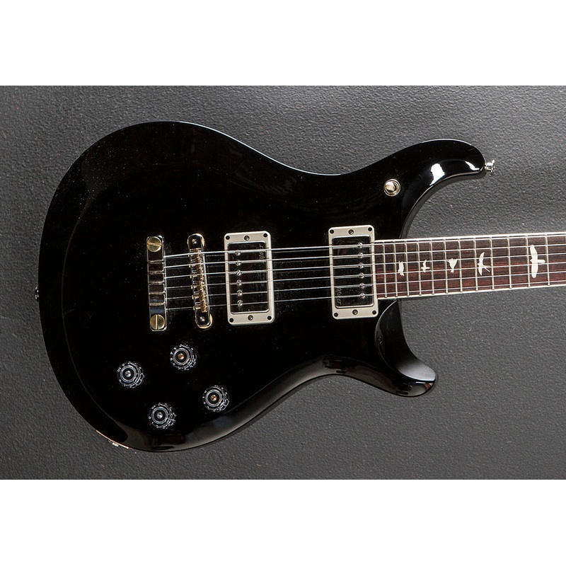 Black, High gloss nitro finish, Asymmetric beveled Maple top on a Mahogany body, Pattern Vintage carved Mahogany neck, 10 radius Rosewood fingerboard with the Bird inlays and faux Bone binding, 24.594 scale length, 1 11/16th nut width, PRS 58/15 LT bridge