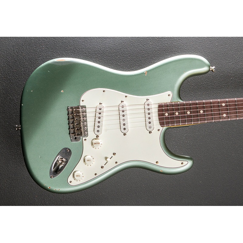 Teal Green Metallic, Light aged body finish, Alder body, C shaped Maple neck with a 10″ radius Rosewood fingerboard and medium jumbo frets, 25.5 scale length, 1 5/8th nut width, Lollar/Nash Special S bridge and Lollar Blonde S middle/neck pickups, 5-way switching with the volume/tone/tone controls, Vintage style tremolo with the bent steel saddles, Vintage style tuners, 7.8 pounds, With hardshell case