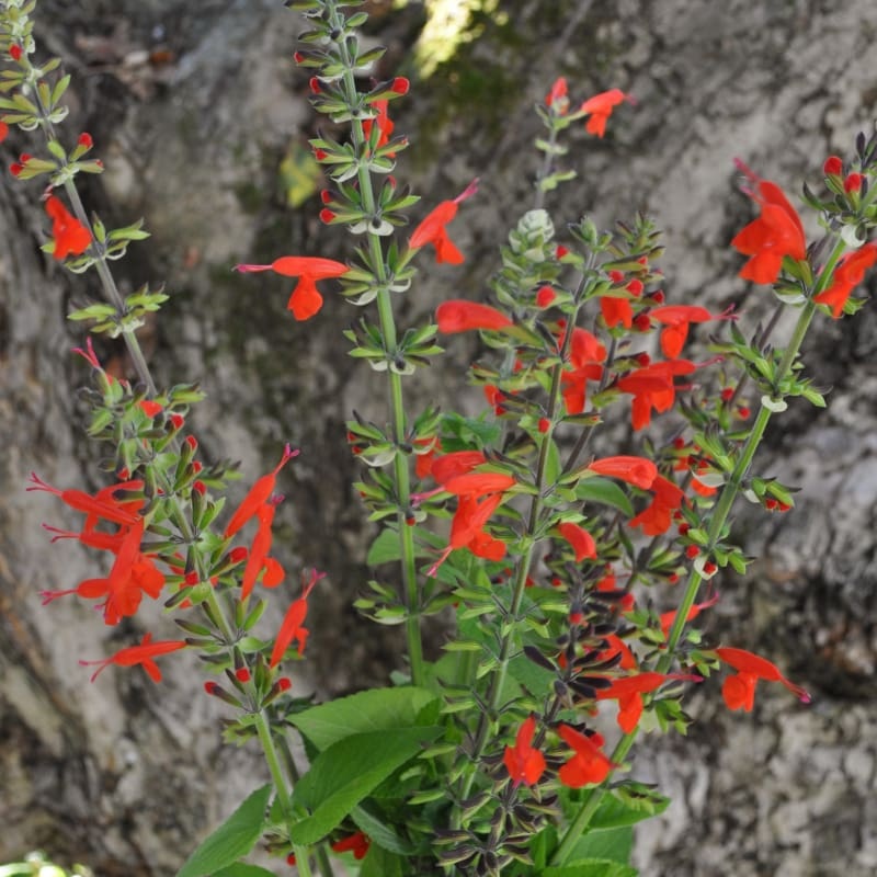 Fiery red spikes attract butterflies, hummingbirds, and other pollinators. A southern native wildflower that can take on hot, dry summers with grace. Flowers continuously from mid-summer into fall. Dramatic plants grow 24-36 inches tall, covered with flashy scarlet blossoms. Blooms first year from seed for us northerners. A perennial in zone 9-10. Naturalizes in most areas.