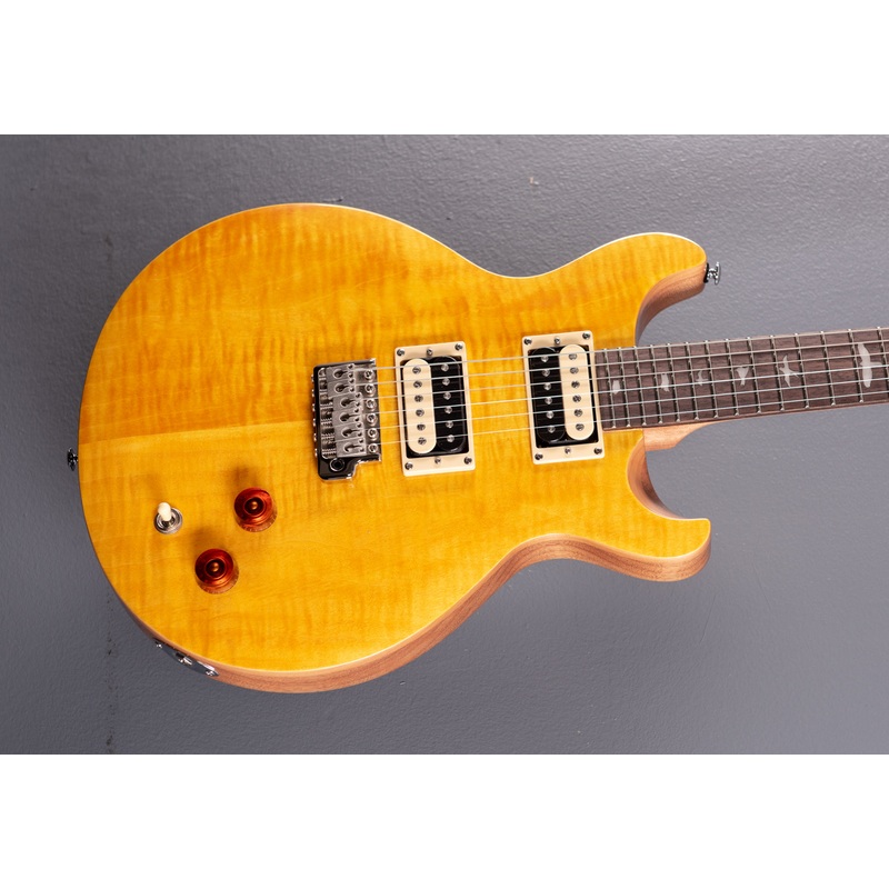 Excellent Condition, Santana Yellow, Beveled Maple top with a Flame Maple veneer, Mahogany body, Wide/Fat carved Mahogany neck, 10" radius Rosewood fingerboard with the Bird inlays, 24.5 scale length, 1 11/16th nut width, Santana "S" bridge and neck pickup