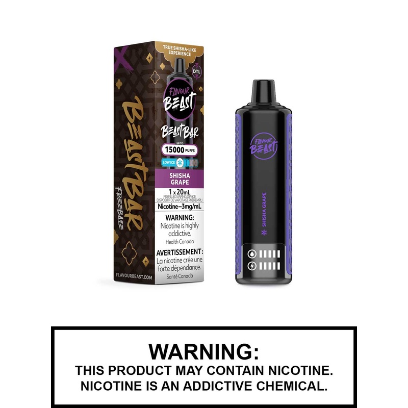 Introducing the Shisha Grape Flavour Beast Beast Bar 15K Disposable Vape, crafted for those who crave premium shisha-style flavour and performance. The Beast Bar 15K vape boasts a 20mL eJuice capacity with 3mg freebase nicotine, delivering up to 15,000 puf