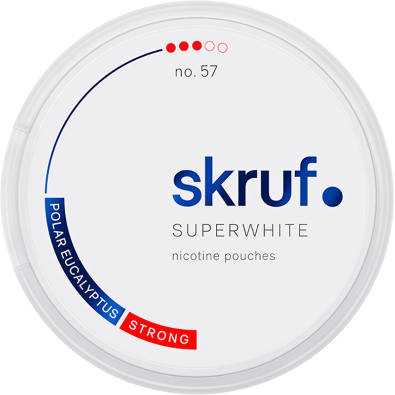 About the product - Skruf Super White Slim Polar #3 This variant is an all-white slim snus with a clear taste of mint and eucalyptus. Its a snus which is part of the all-white series by Skruf which has a high strength and is fully tobacco-free. Facts about