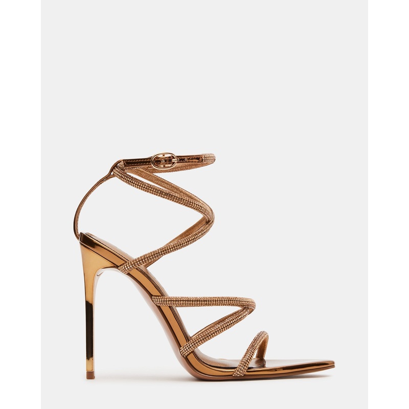 Introducing SKY, the ultimate combination of elegance and femininity. These strappy stiletto heels feature a pointed toe for a sleek and sophisticated look, while the rhinestone embellishment adds a touch of sparkle. Elevate any outfit with these stunning
